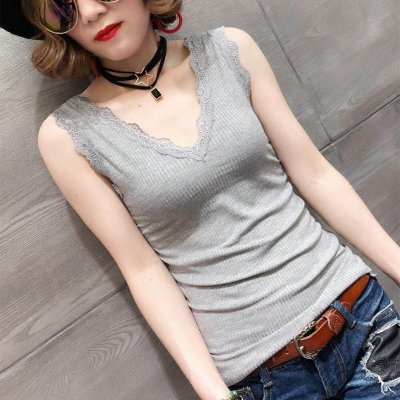 当前位置:首页-女装-春夏洋气双V领蕾丝花边螺纹棉背心吊带女修身显瘦无袖背心打底衫