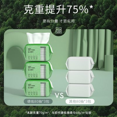 2022德佑绵柔巾干湿两用新生儿非湿纸巾宝宝洗脸非棉柔巾80抽15包优惠券