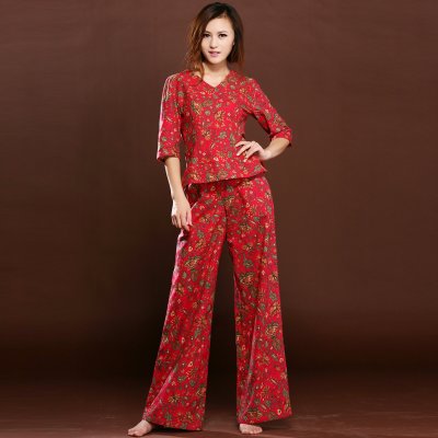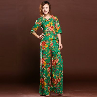 最好的原创民族风阔腿裤棉麻套装东北大花布亚麻V领上衣女裙裤直筒裤优惠券领取5元最好的裙舞梦优惠券,裙舞梦优惠券,
