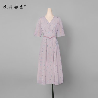 最好的2022夏装新款时尚复古V领花瓣袖印花雪纺连衣裙宫廷风A摆伞裙优惠券领取50元最好的达菲时尚优惠券,达菲时尚优惠券,