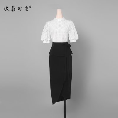 最好的小香风气质两件套波点上衣T恤黑色裙子套装女装2022新款夏装优惠券领取50元最好的达菲时尚优惠券,达菲时尚优惠券,