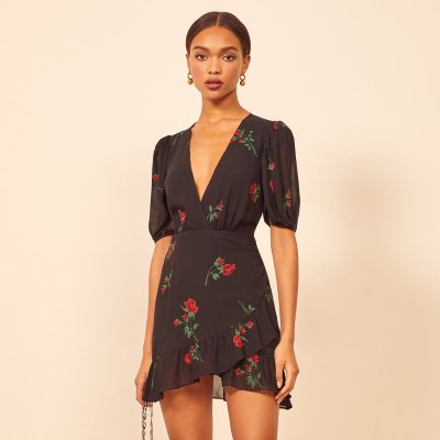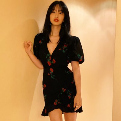 最好的reformation连衣裙法式v领泡泡袖复古一片式茶歇裙女杨采钰同款优惠券领取5元最好的别处服饰优惠券,别处服饰优惠券,
