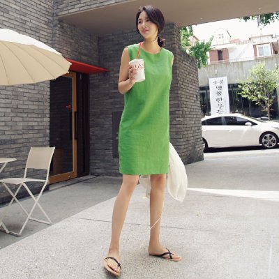 最好的无袖连衣裙牛油果抹茶绿2021夏装新款韩国宽松大码中长款棉麻裙子优惠券领取3元最好的溧梅8787优惠券,溧梅8787优惠券,