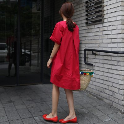 最好的2022夏季韩国东大门宽松酒红色五分袖显瘦直筒棉麻连衣裙女中长款优惠券领取3元最好的溧梅8787优惠券,溧梅8787优惠券,