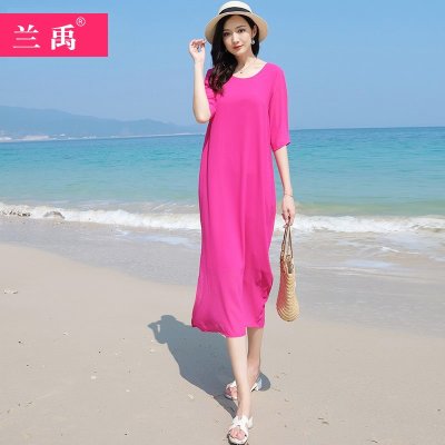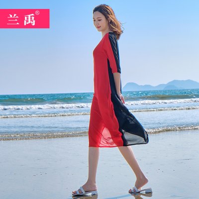 最好的红色雪纺度假连衣裙女夏2022新款过膝宽松中长款显瘦三亚沙滩长裙优惠券领取10元最好的兰禹旗舰店优惠券,兰禹旗舰店优惠券,