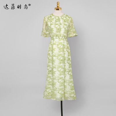 最好的印花雪纺长裙气质收腰短袖显瘦中长款连衣裙女装夏装2022新款优惠券领取50元最好的达菲时尚优惠券,达菲时尚优惠券,