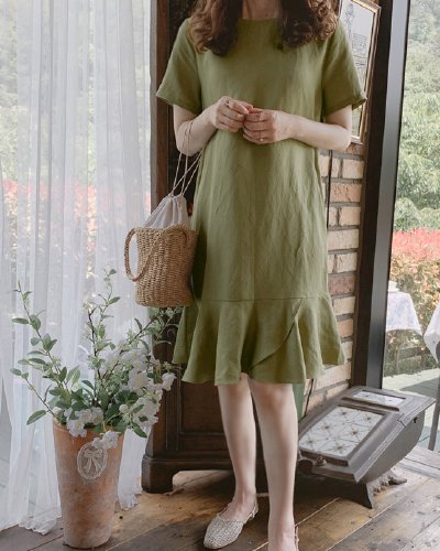最好的韩国东大门棉麻夏季短袖连衣裙2022新款淑女气质纯色荷叶边中长裙优惠券领取3元最好的溧梅8787优惠券,溧梅8787优惠券,