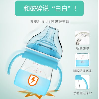 最好的好孩子玻璃奶瓶新生婴儿防摔防爆宽口径初生宝宝喝水小奶瓶防胀气优惠券领取20元最好的明德母婴专营店优惠券,明德母婴专营店优惠券,