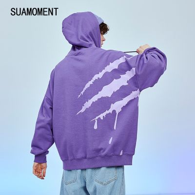 SuaMoment血爪痕侧大爪帽衫套头嘻哈宽松情侣装国潮牌连帽卫衣优惠券