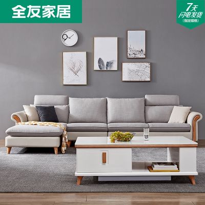 全友家居皮布沙发现代简约客厅家具升降头枕布沙发贵妃沙发102381品牌优惠券排行榜