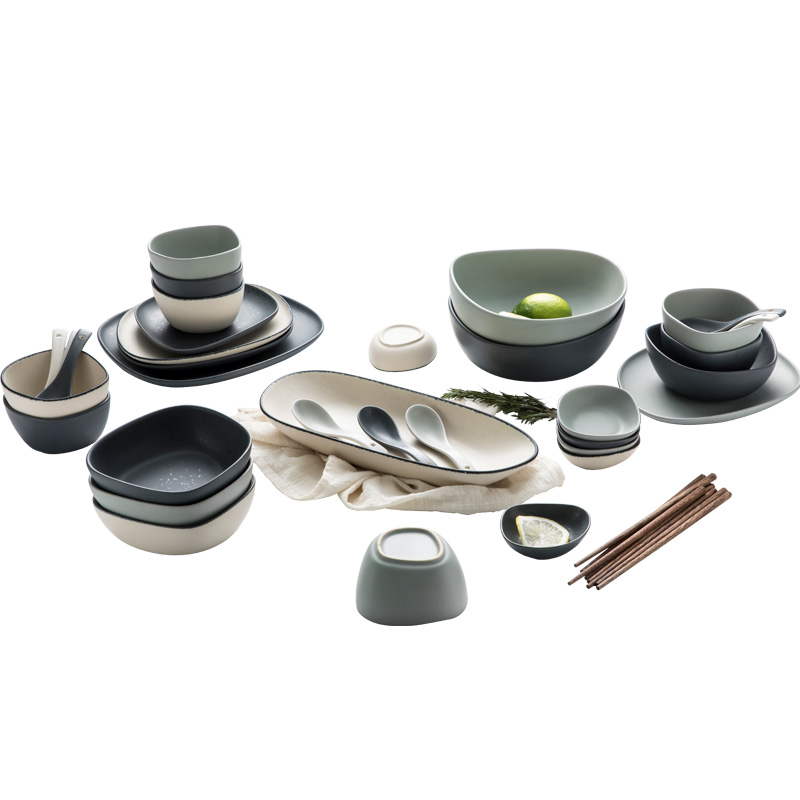 驼背雨奶奶家用碗碟套装餐具日式网红ins风创意陶瓷碗北欧盘子