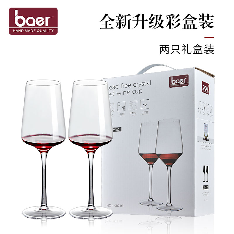 baer 红酒杯水晶人工创意奢华欧式高脚杯2个一对情侣家用葡萄酒杯