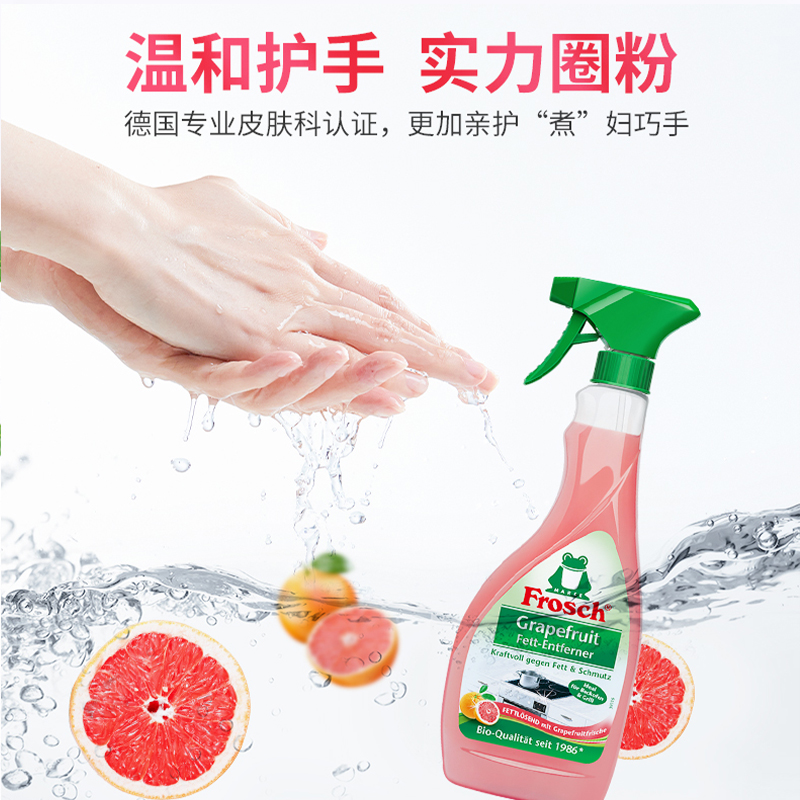 进口Frosch 厨房重油污清洁剂 西柚高效灶具油烟机清洗剂500ML