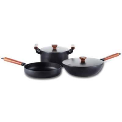 新房家用全套厨具铸铁锅 三 四件套锅组 炒锅平底不粘 锅具套装