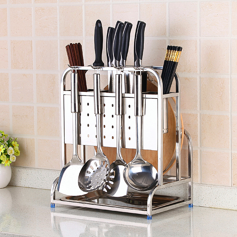 不锈钢刀架刀座厨房置物架多功能菜刀架砧板架厨房收纳架壁挂落地