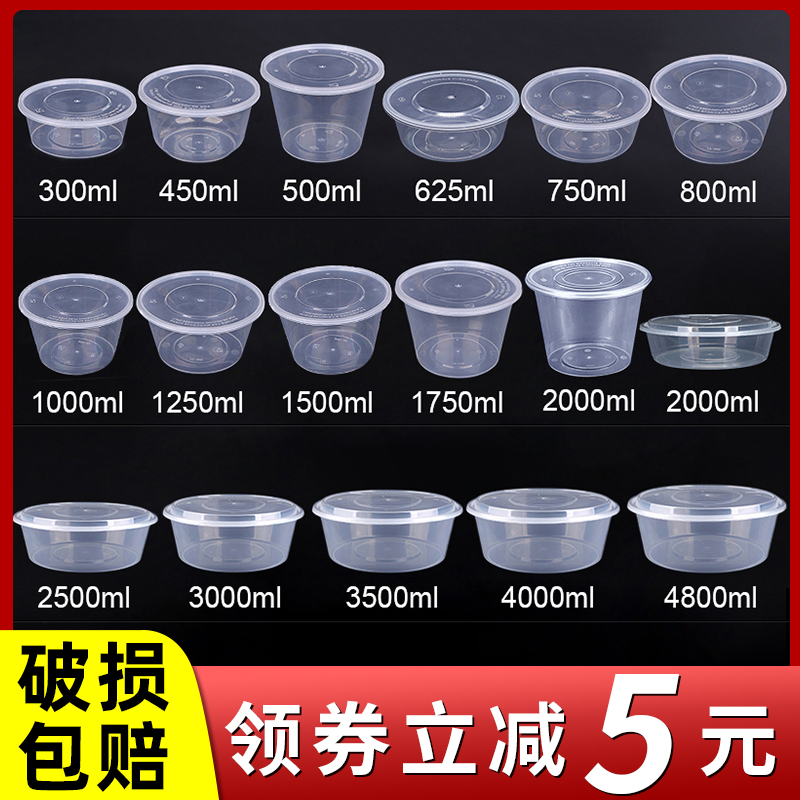 圆形一次性餐盒1000ML塑料透明圆碗外卖打包盒快餐保鲜饭盒酱料盒