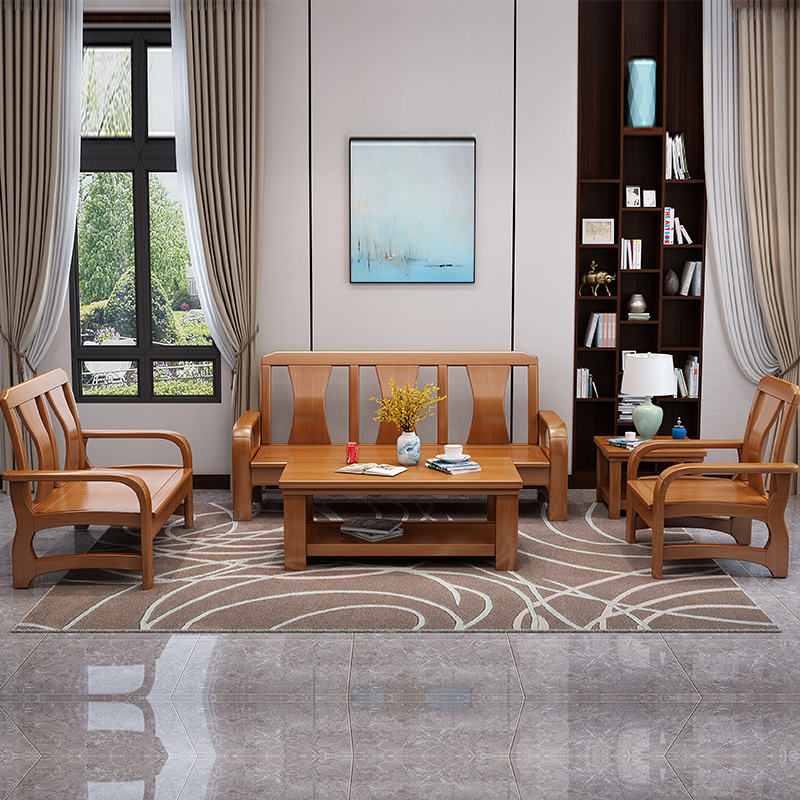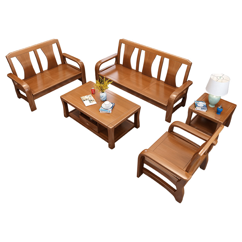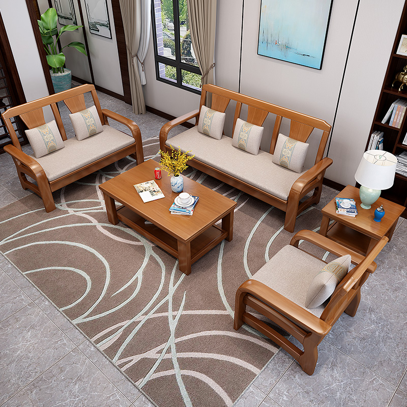 实木沙发组合 1+2+3现代简约新中式三人木质沙发冬夏两用客厅家具