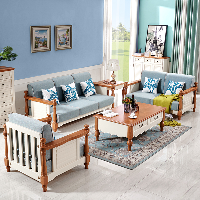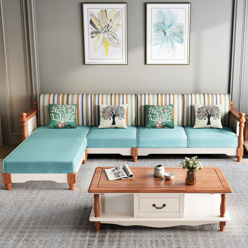 全实木沙发地中海风格客厅L型转角贵妃U型组合三人位美式套系家具