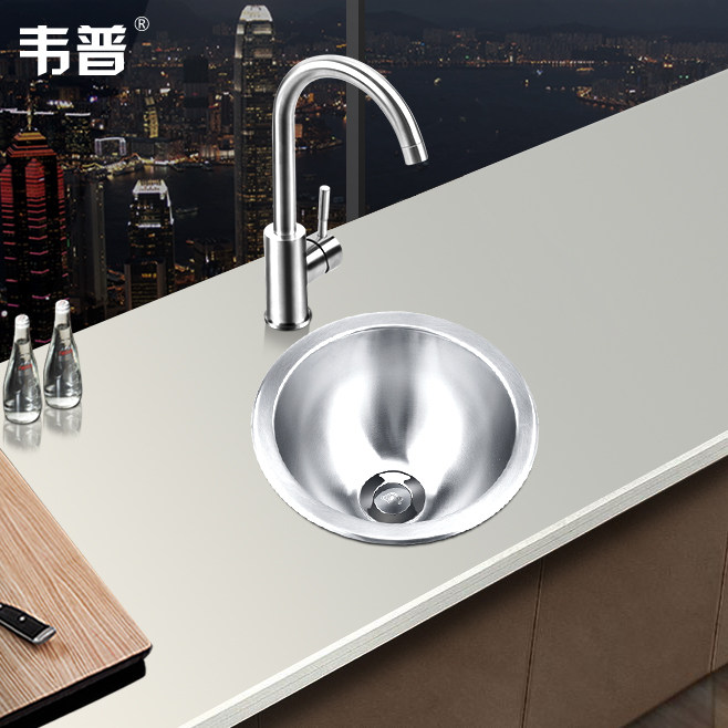 韦普304不锈钢吧台圆形迷你小水槽单槽套餐房车游艇小洗手洗菜盆