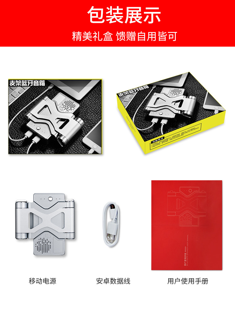 多功能手机充电宝带懒人折叠支架蓝牙音响三合一万能便携户外直播移动电源音箱二合一多用创意礼品可定制logo