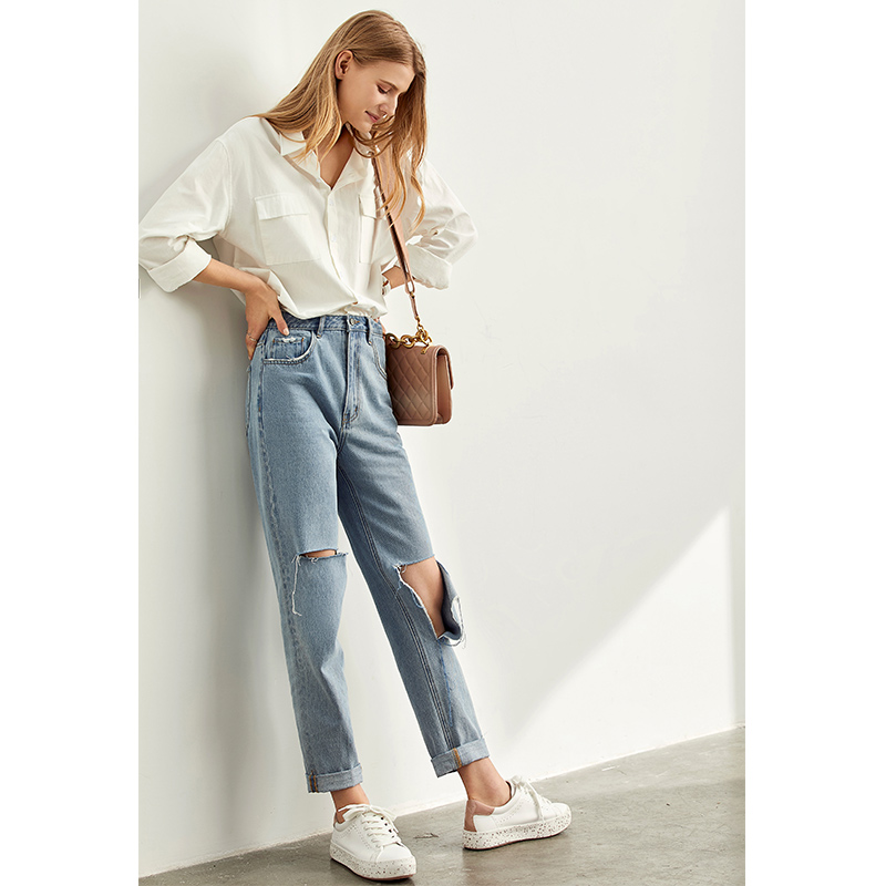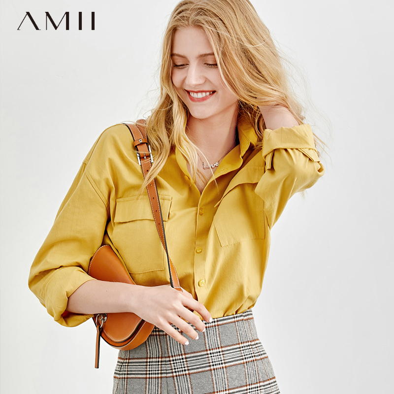 Amii黄色衬衫女小个子2021春秋新款韩版长袖宽松休闲棉质衬衣外套