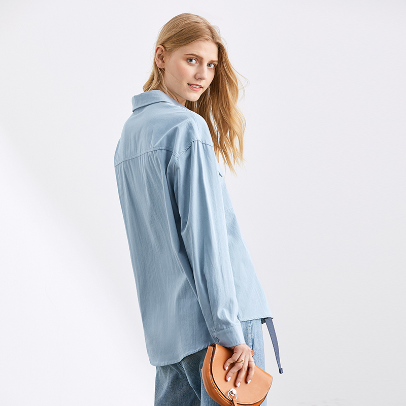 Amii极简女装官方正品2020衬衫圆领长袖简约单排多扣 11920206
