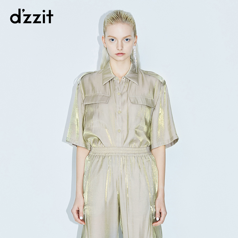 dzzit地素 2020夏专柜新款珠光偏光工装风短袖衬衫女3C2C2141U