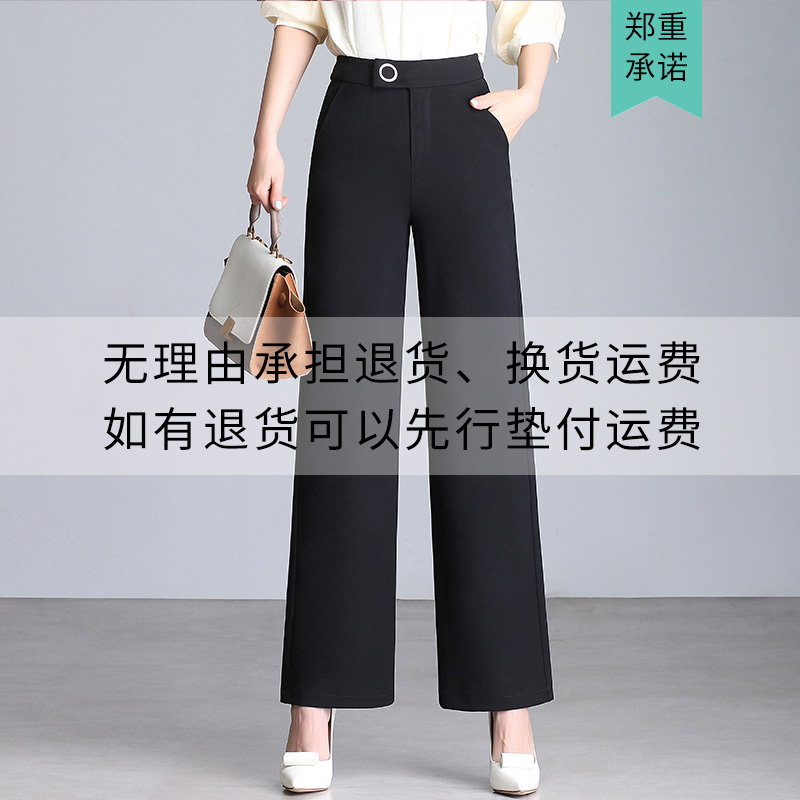 2021新款春秋微弹高腰休闲宽松时尚阔腿裤女长裤大码直筒女裤