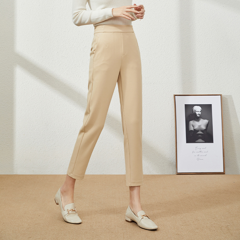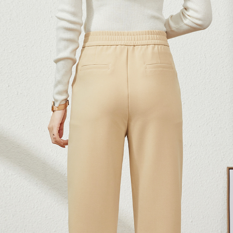 逸阳女裤2021秋季新款米色休闲裤女高腰宽松显瘦九分哈伦萝卜垮裤