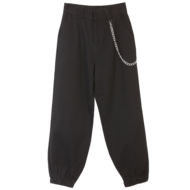 丹尼家2021秋装高腰宽松束腿lisa链条黑色嘻哈休闲工装裤 女 舞蹈