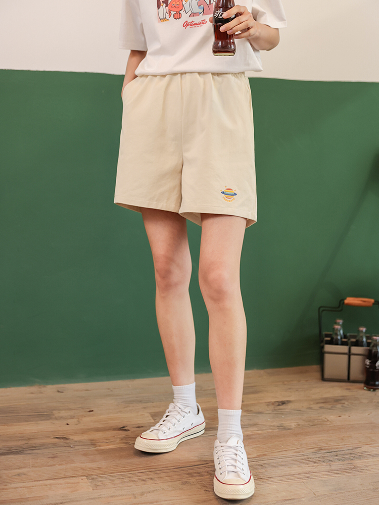 尔给黑色裤子休闲短裤女夏阔腿宽松薄款运动中裤日系小个子五分裤