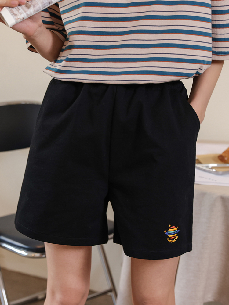尔给黑色裤子休闲短裤女夏阔腿宽松薄款运动中裤日系小个子五分裤