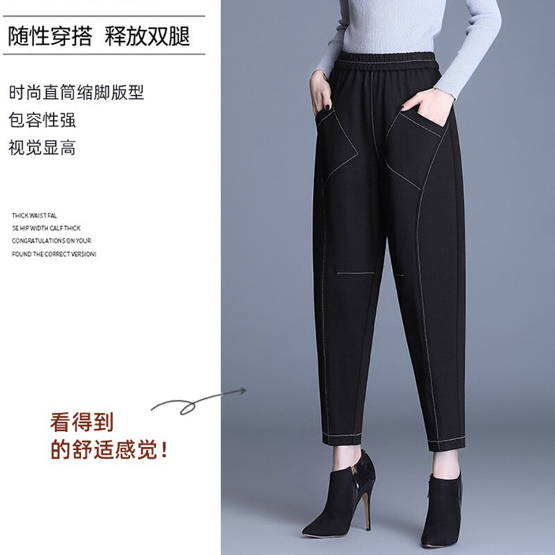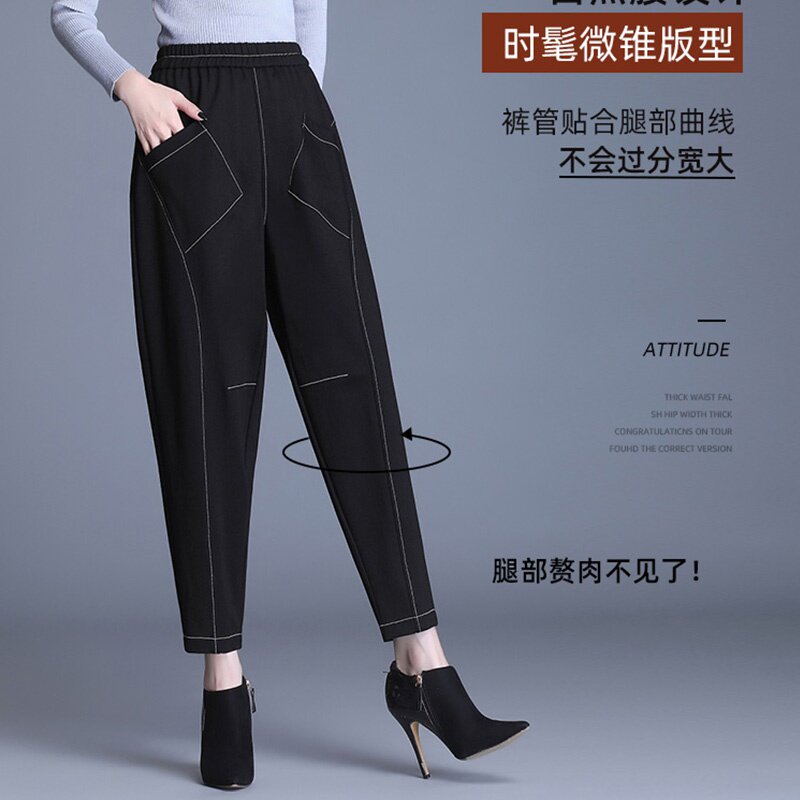 哈伦长西裤子女2020新款秋冬季宽松显瘦老爹奶奶萝卜直筒小脚休闲