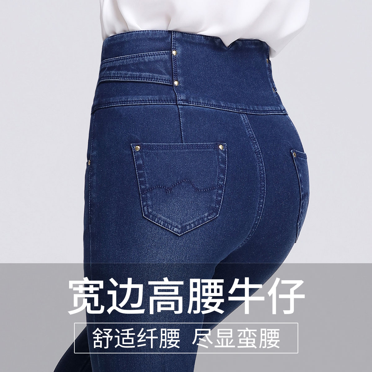 捷纯高腰牛仔裤女2021年新款紧身四面弹力显瘦铅笔春秋女士小脚裤
