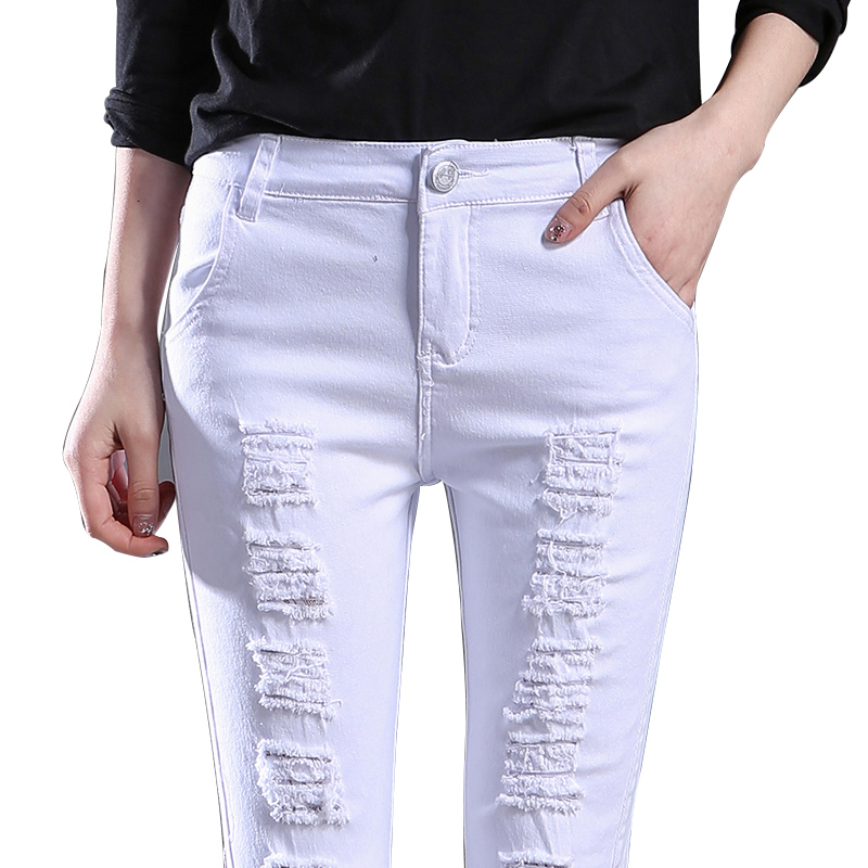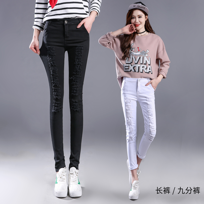 白色破洞牛仔裤女夏季薄款2021新款显瘦高腰铅笔裤弹力紧身小脚裤
