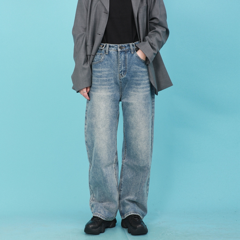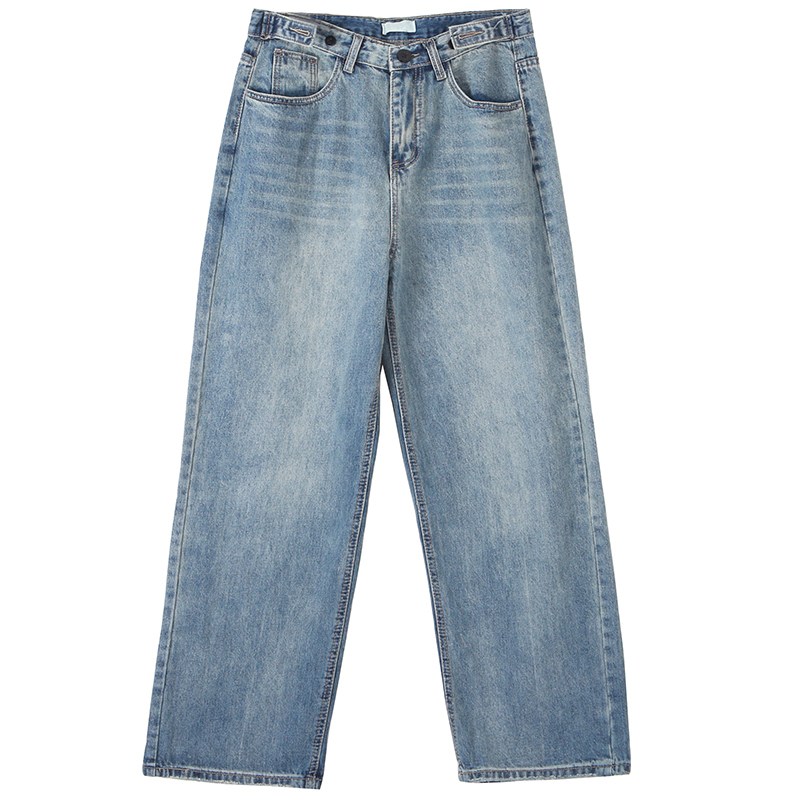 丹尼家2021秋装新款宽可调节腰围高腰老爹裤 复古牛仔裤 女士显瘦