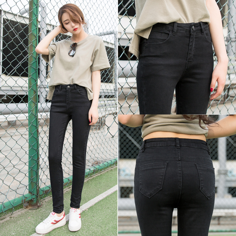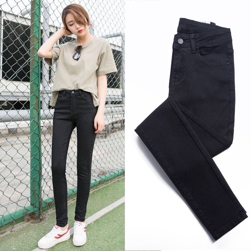 黑色牛仔裤女2021年春秋新款韩版显瘦小脚紧身九分裤弹力高腰长裤