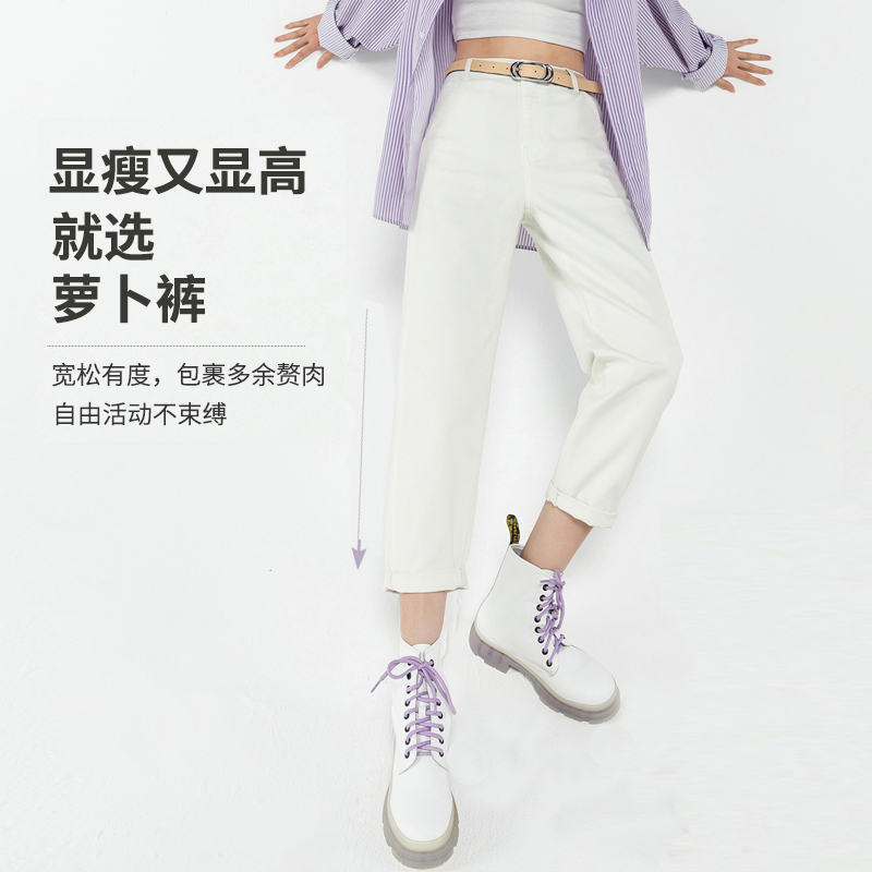逸阳女裤2021早秋三防米色白色老爹裤女高腰裤大码宽松哈伦牛仔裤
