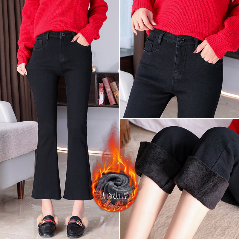加绒微喇裤女牛仔裤女八分裤新款弹力喇叭裤修身显瘦九分裤小个子