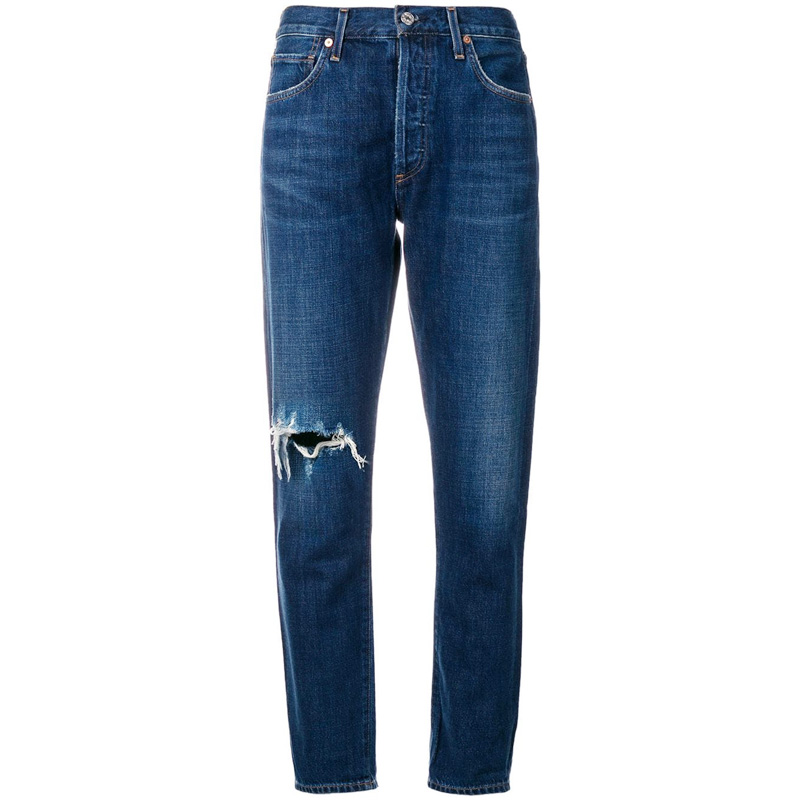 国内现货美国购 Citizens of Humanity Liya高腰破洞直筒牛仔裤女