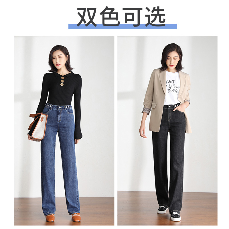 直筒黑色牛仔裤女2021早秋新款女裤高腰宽松阔腿裤子大码韩版长裤