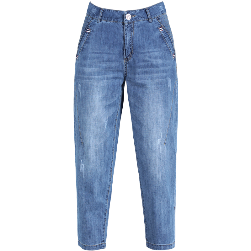 七分牛仔裤女夏薄款高腰小个子八分裤全棉宽松萝卜老爹裤女哈伦裤