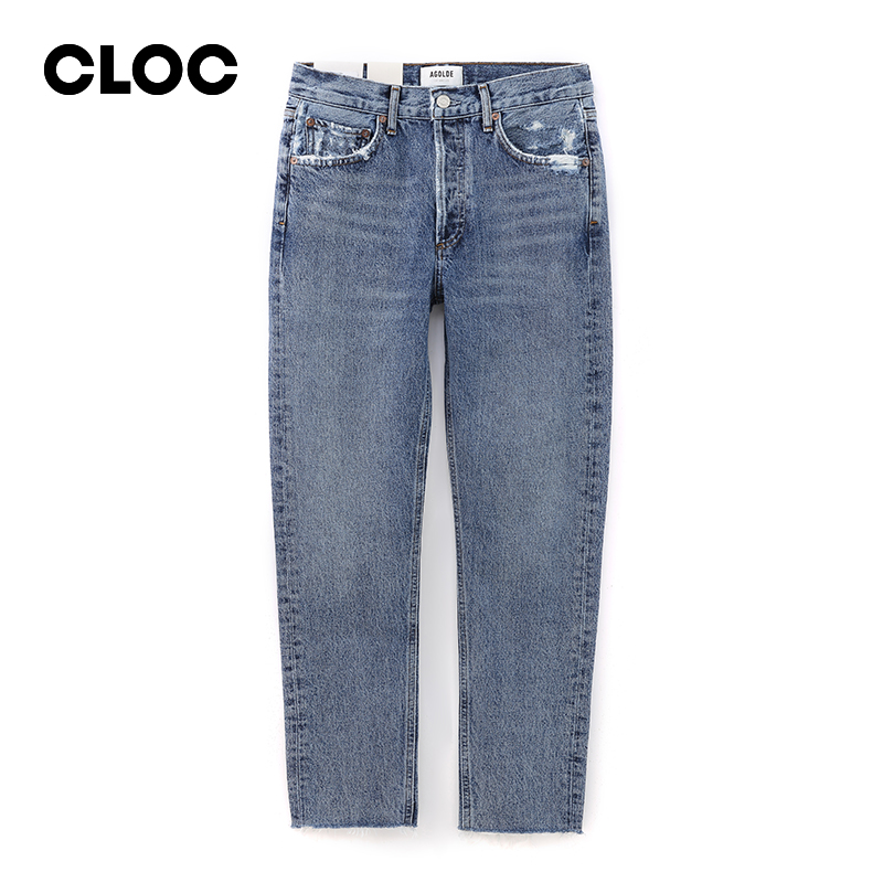 CLOC超级丹宁AGOLDE新款蓝色薄款男友裤高腰显瘦九分直筒牛仔裤女