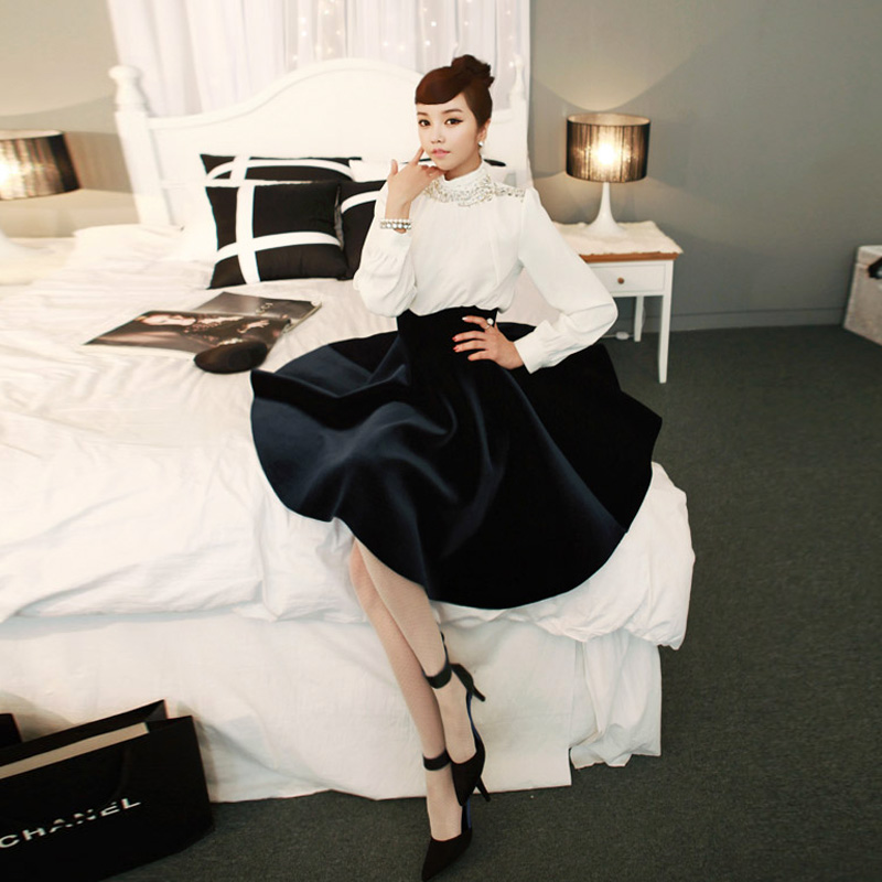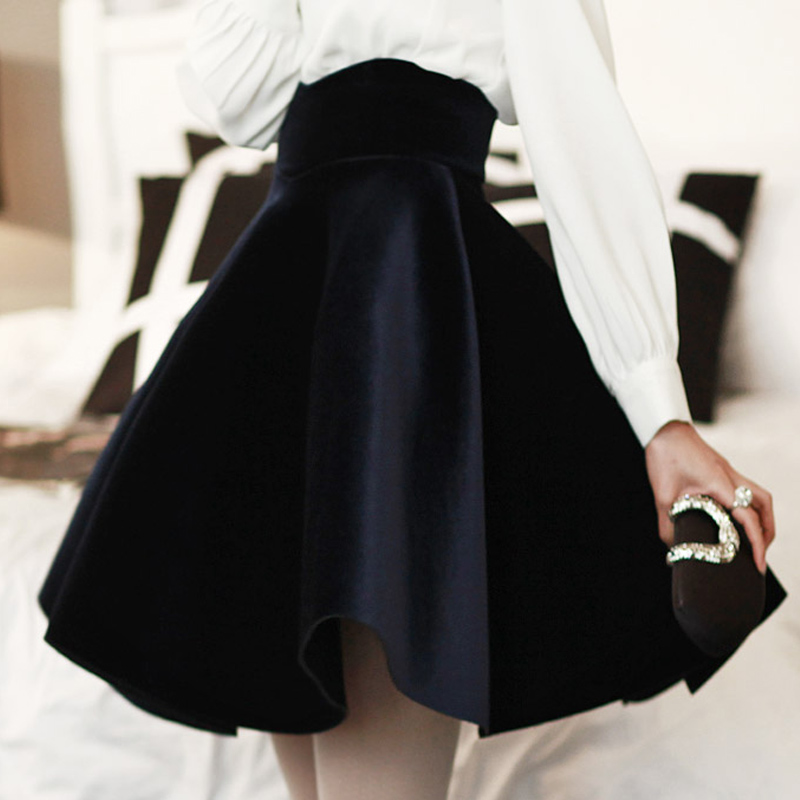 秋冬丝绒蓬蓬裙半身裙女高腰复古大摆伞裙裙子金丝绒小个子显高瘦