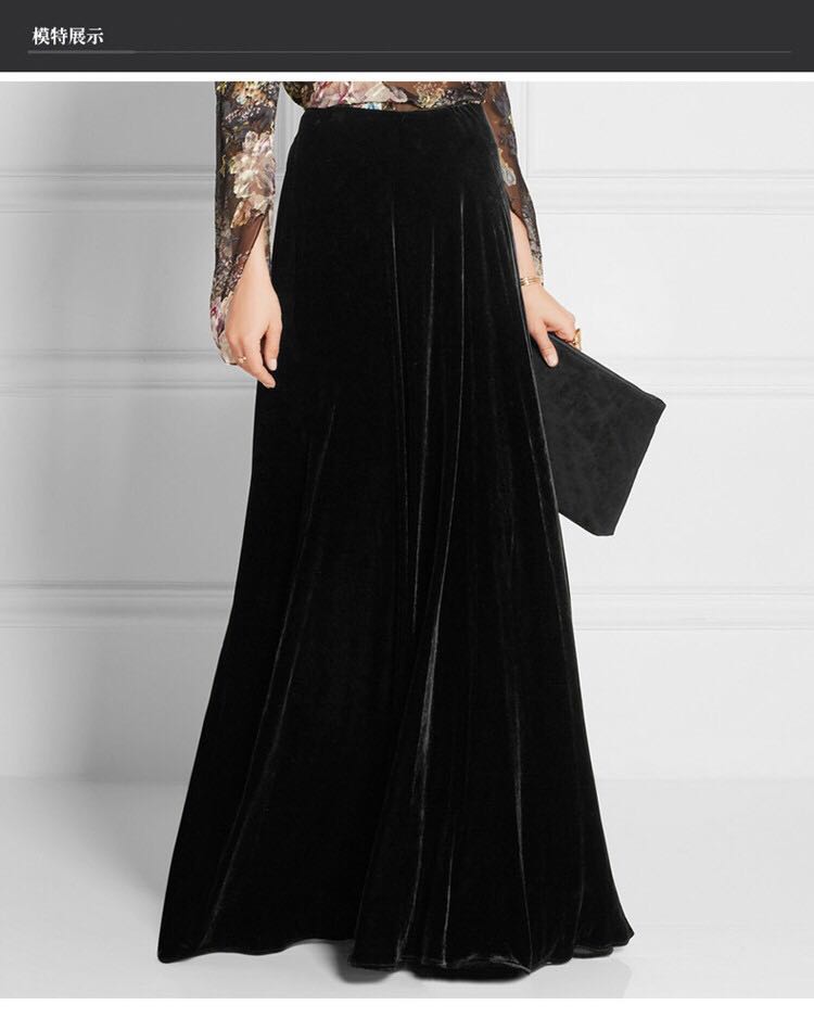 春秋款欧美复古金丝绒高腰半身长裙拖地及踝半身大摆超长长裙