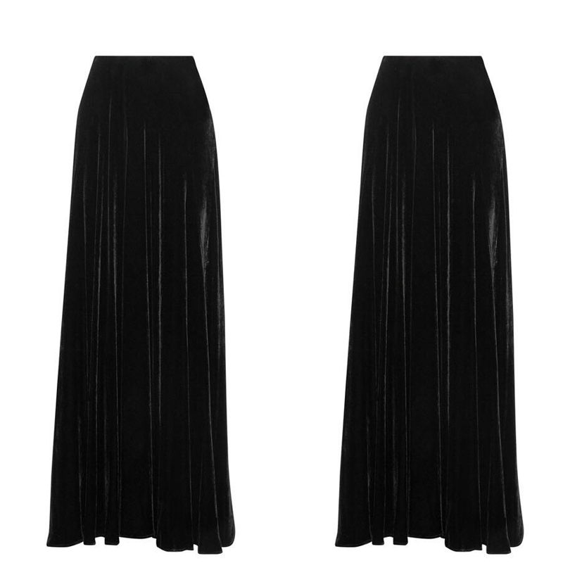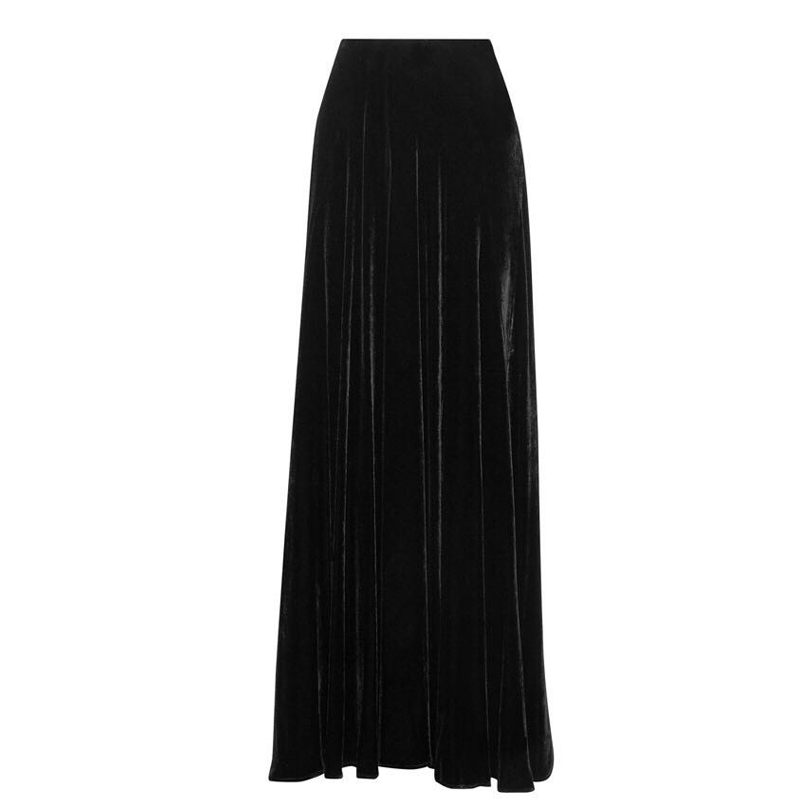 广场舞裙复古金丝绒长裙高腰半身拖地长裙欧美百搭纯色大摆长裙潮