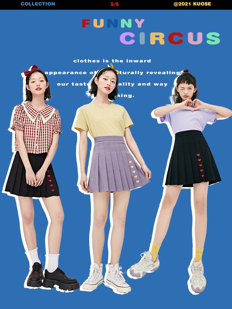 阔色高腰爱心百褶半身裙女2021新款夏季韩版时尚小个子jk短裙