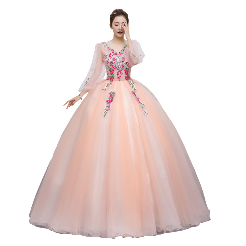 新款彩纱婚纱礼服舞台独唱艺考影楼服装长款女主持演出礼服蓬蓬裙