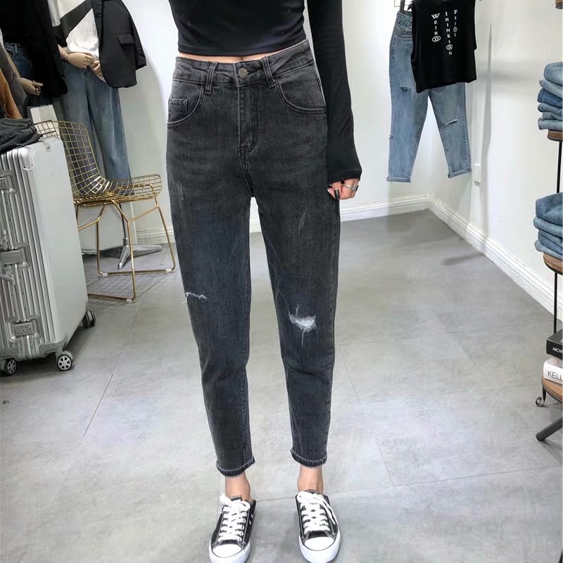 大码高腰牛仔裤女宽松哈伦阔腿老爹裤显瘦显高适合胯大腿粗的裤子