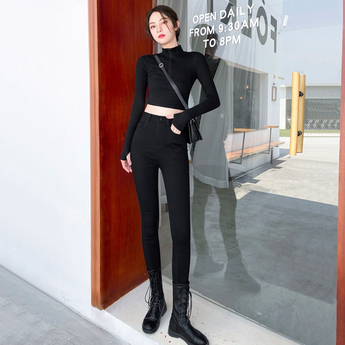 维迪美黑色牛仔裤女紧身小脚高腰显瘦2021年春秋新款百搭九分裤子